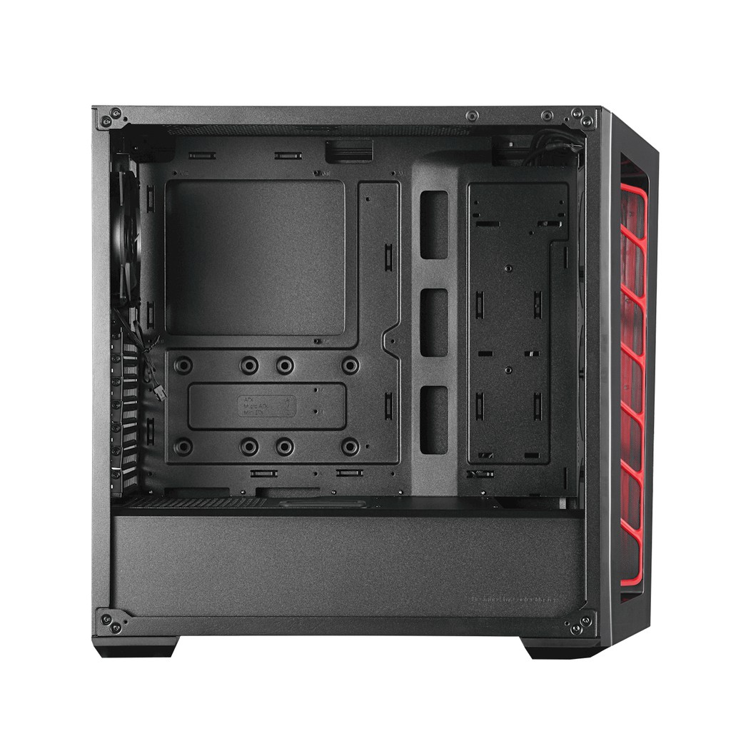 Case Masterbox MB520 Red Trim hỗ trợ dạng mainboard ATX; Micro-ATX; Mini-ITX – thông tin người dùng cần lưu ý để tránh gặp phải trường hợp nhầm lẫn khi mua dẫn đến main không hợp với case. Bên canh đó hỗ trợ thêm các khay mở rộng với các kích thước khác nhau giúp người dùng có nhiều lựa chọn hơn. 2 khay 3.5” và 4 khay dành cho 2.5”. Case được thiết kế sẵn với 1 fan 12 cm mặt sau giúp máy tỏa nhiệt tốt nhất trong quá trình sử dụng.