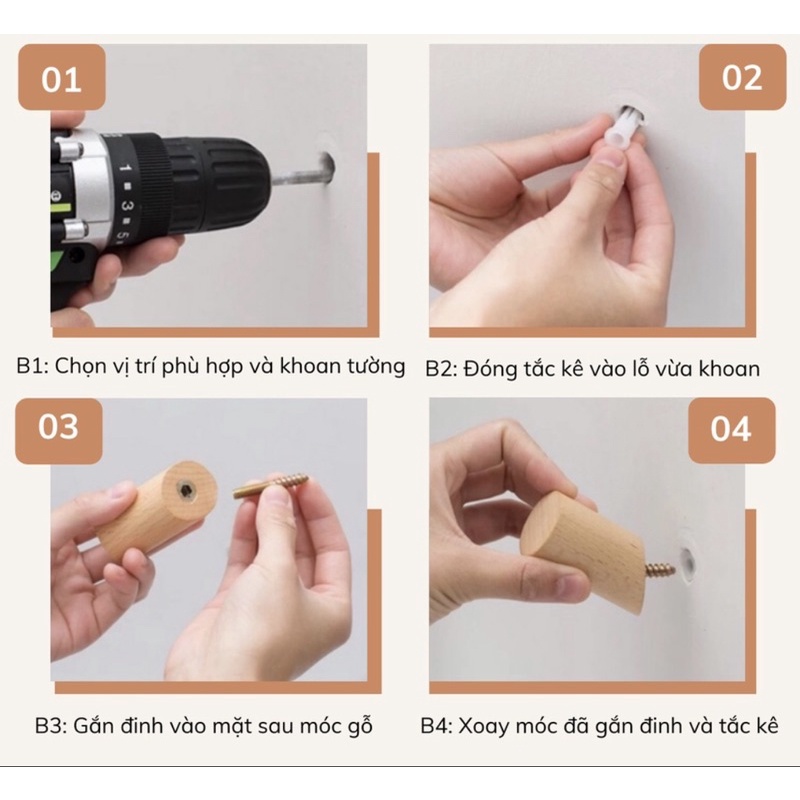 [Xả hàng] móc gỗ gắn tường treo đồ đa năng , siêu chịu lực