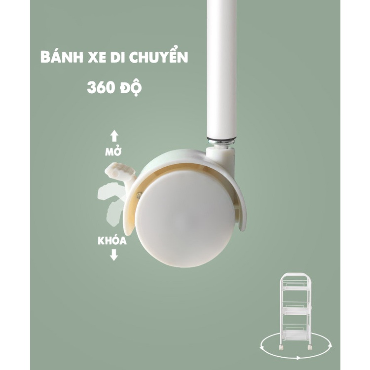 -Bánh xe xoay 360 độ tiện lợi di chuyển , thay đổi vị trí ( bánh có khóa chống trơn trượt khi không di chuyển ).